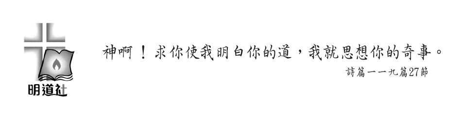 然而,我們仍確信閱讀思考上主的話在當下的不可取代。 「明道社」不只是出版各種聖經叢書,更幫助你我在紛亂世情中保持清醒,用上主的眼光看世界。